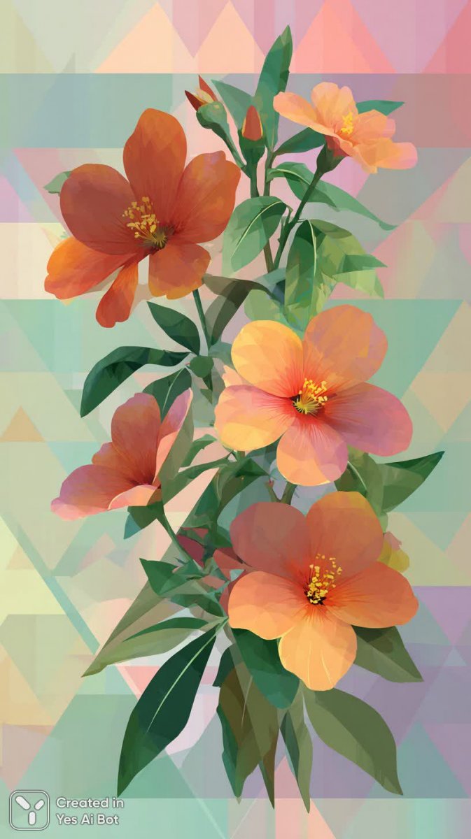 Яркая абстрактная иллюстрация представляет собой стилизованное изображение цветов, собранных в аккуратную треугольную композицию. Основной акцент сделан на крупные оранжевые соцветия, которые контрастируют с насыщенно-зелеными листьями, создавая динамичный и привлекательный визуальный эффект. Фон выполнен в градиентных пастельных тонах, что добавляет изображению легкости и воздушности. Минималистичный стиль подчеркивается использованием геометрических форм и четких линий, характерных для векторной графики. Изображение выполнено в виде png файла, что обеспечивает его высокое качество и универсальность для различных целей использования – от веб-дизайна до печати. Эта работа демонстрирует гармоничное сочетание цветов и форм, воплощая идею природной красоты в современном геометрическом ключе. Абстрактная природа цветов подчеркивает их эстетическую ценность, а лаконичный дизайн делает иллюстрацию универсальной для широкого спектра проектов. Оранжевые акценты придают яркости и энергии, а пастельные оттенки фона создают ощущение спокойствия и умиротворения. В целом иллюстрация передает позитивное настроение и является прекрасным примером современного графического искусства, сочетающего в себе простоту и элегантность