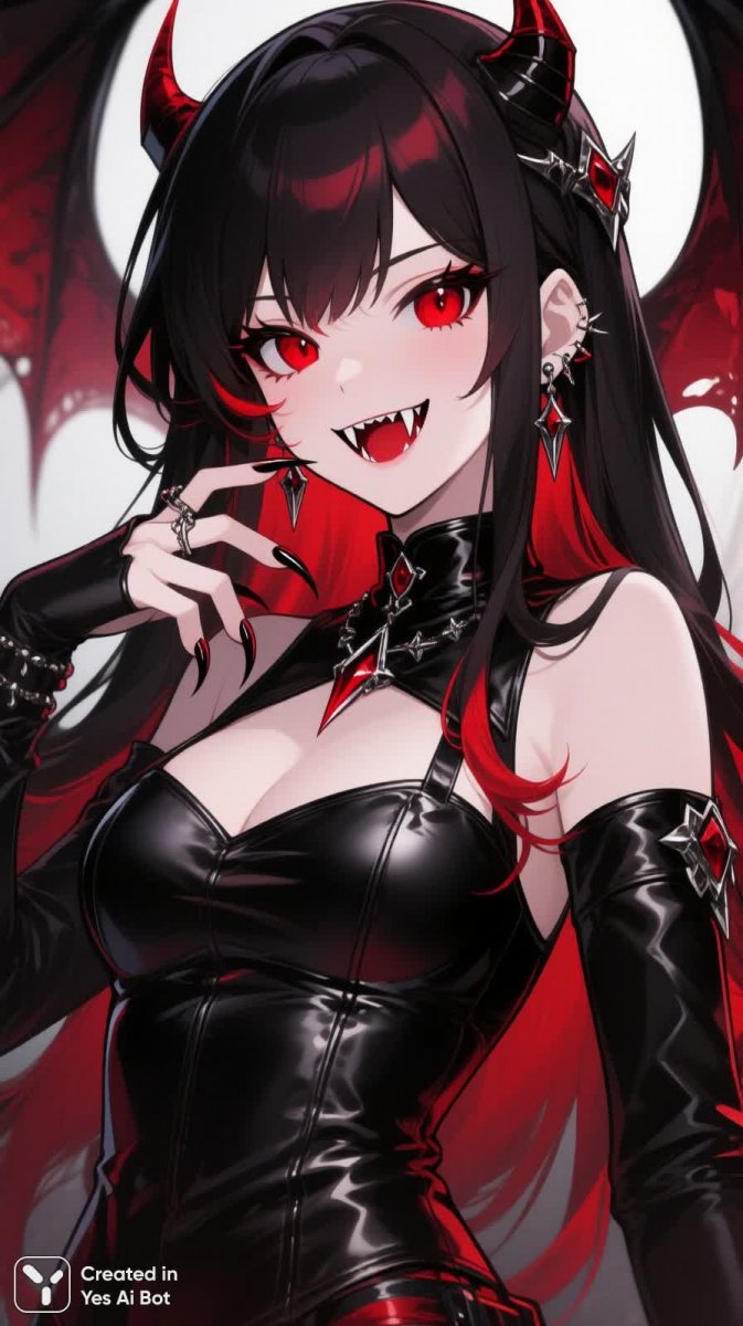 Очаровательная аниме-девушка вампир в стильном кожаном наряде предстает перед зрителем в завораживающем цифровом искусстве. Ее длинные темные волосы с алыми кончиками контрастируют с безупречной кожей, подчеркивая дерзкий и соблазнительный образ. Пронзительные красные глаза излучают загадочность и силу, а тонкая, но хищная улыбка намекает на скрытую опасность. Острые ногти и едва заметные клыки добавляют образу вампирической грации и элегантности. Работа выполнена с вниманием к деталям: четкие контуры усиливают визуальное воздействие, а тщательно проработанные элементы создают атмосферу гламура и роскоши. Эта цифровая иллюстрация воплощает в себе сочетание нежности и хищничества, демонстрируя красоту и силу мистического существа в современном стиле. Изображение передает ощущение моды, стиля и тайны, заставляя зрителя задуматься о природе этой прекрасной и опасной девушки. Безупречное исполнение подчеркивает талант художника и создает незабываемый визуальный опыт. Это не просто рисунок – это история, рассказанная языком цвета, формы и света