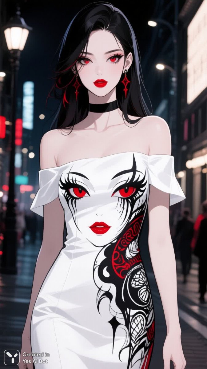 На изображении, созданном нейросетью Qwen Image, представлена изысканная портретная фотография современной женщины, излучающей элегантность и женственность в атмосфере ночного города. Модель одета в белое платье с открытыми плечами, которое подчеркивает ее стройную фигуру, а на лицевой части платья расположен крупный абстрактный принт, добавляющий образу артистизма и визуальной выразительности. Яркий макияж губ насыщенного красного цвета создает эффектный контраст с нежностью белого цвета ткани, придавая облику чувственности и уверенности. Мягкое ночное освещение акцентирует внимание на деталях кроя и фактуре платья, создавая атмосферу таинственности и притягательности. Композиция отражает сочетание современного искусства и уличной моды, демонстрируя смелость экспериментов и безупречный вкус. Акцент сделан на изысканности силуэта, гармонии цветов и общей легкости образа, дополненного стильной прической и безупречным макияжем. Изображение передаёт историю о красоте, уверенности и индивидуальности, запечатленную в каждой детали тщательно подобранного наряда, с использованием промта, описывающего модель, платье, макияж, стиль и атмосферу изображения. Нейросеть Qwen Images использовала модель QWEN.Basic, а для создания изображения применялся сэмплер euler со стилями Anime, Gothic и Detailed.
