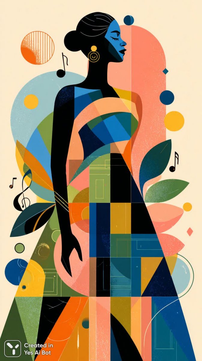 midjourney Яркая абстракция: танцующая женщина в стиле минимализма и геометрии. Генерация из нейронной сети Midjourney