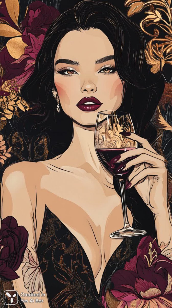 Изысканный портрет ослепительной модели, воплощающей в себе роскошь и стиль. Ее губы, словно капли расплавленного розового золота, притягивают взгляд, а деликатные акценты из чистого золота подчеркивают безупречную красоту. В руках у нее – изящный бокал с благородным вином, символ элегантности и утонченного вкуса. Художественная иллюстрация проработана до мельчайших деталей: сложная текстура помады создает эффект объемной глубины, а выразительные черты лица передают внутренний мир и уверенность в себе. Тонкая работа тушью позволяет с поразительной точностью воссоздать каждый изгиб губ, отблеск золота и малейшие нюансы выражения. Это не просто портрет – это визуальная поэма о красоте, роскоши и утонченности, выполненная в технике безупречного мастерства. Каждое движение руки художника запечатлело мгновение совершенства, создавая образ, который завораживает своей элегантностью и притягательностью. Погрузитесь в мир гламура и насладитесь великолепием этой исключительной работы искусства, где каждая деталь продумана до мелочей, а эстетика восхищает своим совершенством. Она словно сошла с обложки глянцевого журнала, воплощая собой мечту о безупречном стиле и неповторимой красоте
