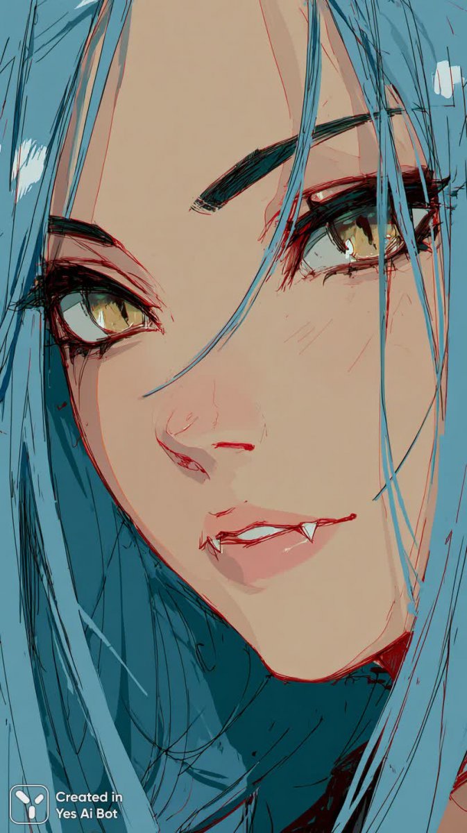 Очаровательная аниме-девушка предстает в образе потрясающей вампирши с длинными небесно-голубыми волосами, подчеркивающими ее загадочную красоту. Ее острые клыки намекают на темную сущность, а яркие желтые глаза излучают завораживающий свет и скрывают в себе тайны вечной ночи. Изысканный черный корсет с красными акцентами придает образу дерзости и элегантности, подчеркивая точеную фигуру и создавая неповторимый силуэт. Легкая улыбка играет на ее губах, добавляя шарма и загадочности этому фантастическому персонажу. В детальной композиции, выполненной в стиле цифрового аниме-арта, акцент сделан на выразительном макияже, который усиливает эффект таинственности и придает лицу особый шарм. Четкие контуры подчеркивают каждую черточку лица, создавая яркий и запоминающийся образ. Крупный план позволяет рассмотреть мельчайшие детали – от блеска в глазах до тонкой текстуры корсета. Этот персонаж – воплощение силы, красоты и загадки, сочетающее в себе нежность аниме-стиля и мрачную привлекательность вампирской тематики. Ее взгляд притягивает внимание, заставляя задуматься о ее прошлом и будущем, о ее темных тайнах и скрытых желаниях. Это изображение – настоящее произведение искусства, которое завораживает своей красотой и не отпускает равнодушным