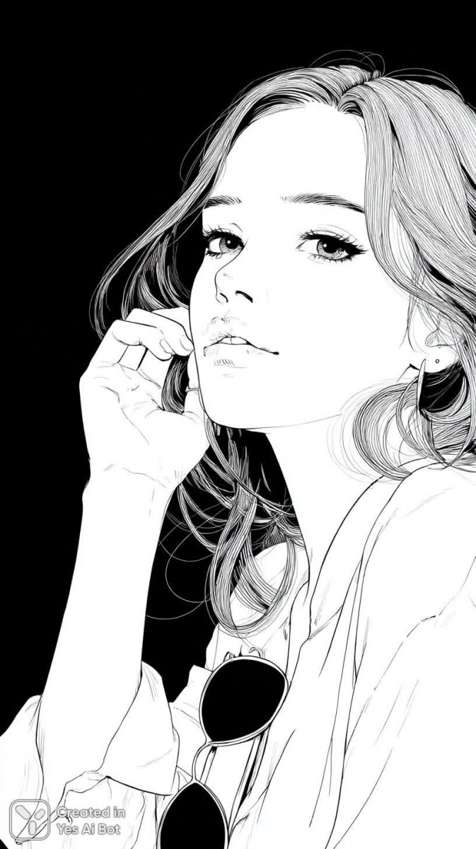 Изящный эскиз молодой женщины в бикини, выполненный в черно-белой гамме. Рисунок передает атмосферу легкости и непринужденности благодаря характерной 'ручной' манере исполнения линий. Девушка с ниспадающими до плеч волосами смотрит на зрителя с легкой кокетливостью, ее губы слегка приоткрыты, добавляя образу чувственности. В руках она держит солнцезащитные очки, которые подчеркивают загадочность и соблазнительность взгляда. Простой фон в белому цвете акцентирует внимание на детализированном изображении фигуры и выразительном лице модели. Общий стиль рисунка выдержан в духе свободных зарисовок с ощущением спонтанности и естественности, что придает ему особый шарм и привлекательность. Это не просто изображение, а момент запечатленный временем, воплощенный в изящных линиях черного карандаша на фоне чистого листа. Кажется, будто она вот-вот скажет что-то загадочное, приглашая зрителя разгадать ее тайну и погрузиться в атмосферу беззаботности и летнего настроения. Легкость мазка создает эффект живой зарисовки, словно художник только что закончил работу над этим портретом