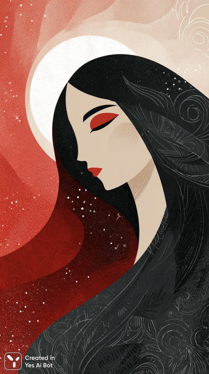 Загадочная красотка с завораживающим макияжем в черно-белой гамме, словно сотканная из теней и света, воплощает собой драматизм и элегантность. Ее длинные струящиеся волосы добавляют образу воздушности и таинственности, создавая впечатление неземной красоты. Фон, выполненный в градиенте насыщенного красного и чистого белого цветов, подчеркивает контрастность макияжа и придает композиции глубину. Добавленные элементы небесного дизайна – звезды, созвездия или лунные символы – усиливают ощущение мистической привлекательности, словно модель является посланницей из другого мира. Акцент на деталях, таких как тонкие линии черного карандаша и безупречное нанесение белых теней, демонстрирует высочайший уровень мастерства визажиста. Вся композиция пронизана утонченностью и гармонией, создавая образ современной богини, сочетающей в себе силу и хрупкость, загадку и красоту. Эта работа – настоящий шедевр визуального искусства, где каждый элемент тщательно продуман и выполнен с максимальной точностью, чтобы передать зрителю неповторимую атмосферу таинственности и очарования. Впечатляющий портрет демонстрирует не только мастерство фотографа и визажиста, но и силу женской красоты в ее самых разных проявлениях
