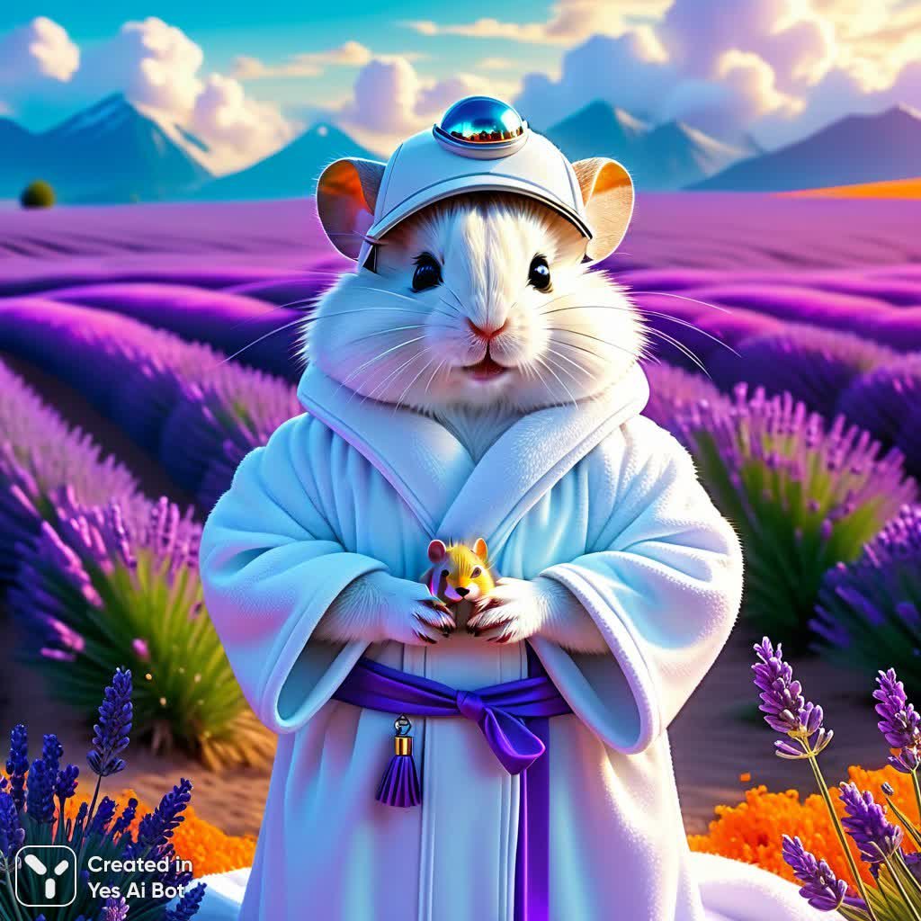Милая и абсурдная сценка, сотканная из нежности и юмора. Воздушные мазки создают ощущение легкости и сказочности, погружая зрителя в миниатюрный мир, где обыденность переплетается с фантазией. В центре внимания – очаровательный микро-хомячок, облаченный в белоснежный халат и забавную шапочку с кисточкой, который нежно обнимает огромного плюшевого Здюна. Этот сюрреалистичный дуэт разворачивается на фоне пышного лавандового поля, где царит атмосфера спокойствия и умиротворения. Яркий объем добавляет глубины и реалистичности изображению, а цифровое искусство создает завораживающий трехмерный эффект. Кажется, будто вы попали в волшебную страну снов, где даже самые маленькие существа могут найти утешение и поддержку в объятиях любимой игрушки. Вся композиция пронизана тонким юмором и нежностью, вызывая улыбку и ощущение тепла. Это небольшая история о дружбе, комфорте и радости жизни, рассказанная языком искусства. Кажется, что это всего лишь маленький кусочек большого мира, но в этом микрокосме заключена целая вселенная эмоций и впечатлений. Невероятное сочетание цветов, текстур и деталей создает поистине завораживающий образ, который остается в памяти надолго