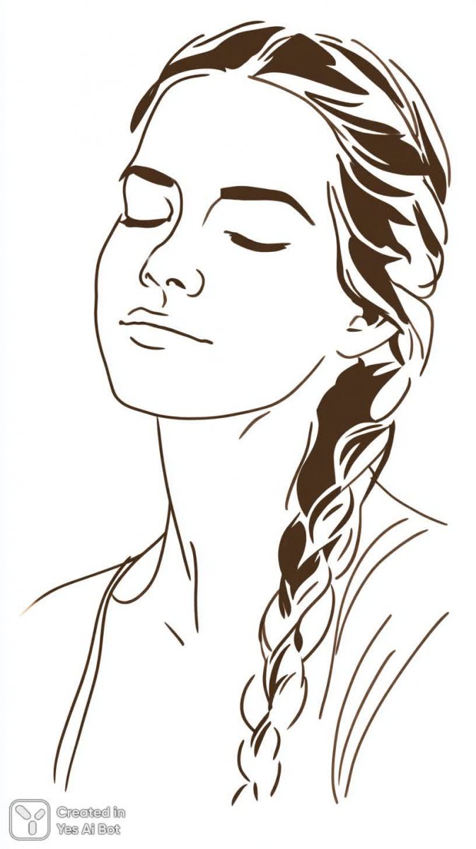 Изящный портрет женщины в стиле минимализма, выполненный тонкой линией на контрастном черно-белом фоне. Лицо, обрамленное длинными косичками, выражает умиротворение и спокойствие. Закрытые глаза и слегка приоткрытые губы создают ощущение нежности и безмятежности. Простой силуэт платья подчеркивает чистоту линий и акцентирует внимание на лице. Рисунок выполнен в технике тушевой графикой, демонстрируя мастерство художника в передаче эмоций и настроения посредством простых штрихов. Композиция отличается лаконичностью и гармонией, отражая стремление к минимализму и простоте форм. Этот монохромный эскиз излучает атмосферу внутренней тишины и покоя, приглашая зрителя погрузиться в созерцание красоты момента. Использование только линий придает работе особую легкость и воздушность, делая ее визуально привлекательной и запоминающейся. В этом рисунке заключена глубина чувств и утонченность восприятия, что делает его настоящим произведением искусства, способным вызвать сильный эмоциональный отклик