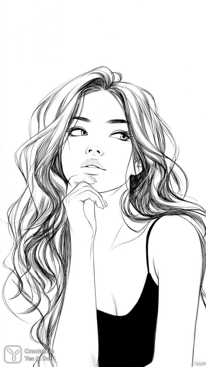 Изящный черно-белый набросок молодой женщины, погруженной в размышления. Ее длинные волосы, ниспадающие мягкими волнами, обрамляют лицо с серьезным выражением. Простой танк-топ подчеркивает ее фигуру, а рука, покоящаяся на подбородке, выдает задумчивость и сосредоточенность. Фон лишен каких-либо деталей – чистый белый цвет акцентирует внимание на модели и усиливает эффект минимализма. Качественная работа выполнена в технике линейного рисунка, используя только линии и тени для создания глубокого образа. Использование чернил придает работе особую выразительность и графичность. Элегантная монохромность создает атмосферу спокойствия и внутренней сосредоточенности. Эта иллюстрация воплощает собой красоту простоты и силу минималистичного подхода к искусству, передавая тонкую гамму чувств и эмоций через лаконичные линии и контраст черного и белого. Набросок излучает утонченность и грацию, приглашая зрителя задуматься вместе с изображенной женщиной. Это не просто рисунок, это запечатленный момент размышления, наполненный глубиной и смыслом. Идеально подходит для тех, кто ценит элегантность и сдержанность в искусстве