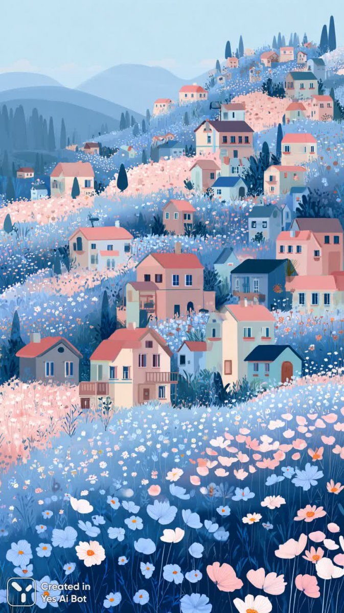 Идиллическая пасторальная сцена, воплощенная в ярких тонах и наивной манере исполнения, переносит зрителя в волшебную страну сказок. Нежный холм утопает в море нежных цветов – лавандовых, персиковых, небесно-голубых и мятных оттенков, создавая атмосферу безмятежности и умиротворения. По склону холма разбросаны причудливые домики с черепичными крышами и резными ставнями, каждый из которых словно сошел со страниц детской книжки. В деталях прослеживается влияние народного искусства – упрощенные формы, декоративные элементы, акцент на ярких цветах и позитивном настроении. Картина излучает тепло и радость, приглашая зрителя окунуться в мир беззаботности и гармонии с природой. Кажется, будто можно услышать тихое жужжание пчел, собирающих нектар с душистых цветов, и почувствовать легкий ветерок, играющий в листве деревьев. Это не просто пейзаж – это воплощение мечты о тихой, счастливой жизни в окружении красоты и доброты. Вся композиция пронизана ощущением сказочности и волшебства, заставляя забыть о повседневных заботах и окунуться в мир фантазий. Эта картина станет прекрасным украшением для любого интерьера, наполняя его светом, радостью и позитивной энергией. Идеально подойдет для тех, кто ценит простоту, красоту и вдохновение