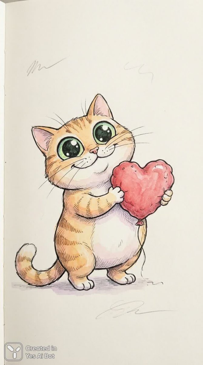 Очаровательный мультяшный котик с огромными выразительными глазами – воплощение игривого настроения и легкой беззаботности. Этот милый персонаж забавно позирует, держа в рту ярко-красное сердечко, что добавляет ему обаяния и создает ощущение искренней радости. Простой стиль рисунка с тонкими линиями и мягким затенением делает изображение нежным и приятным для глаза. Минималистичный белый фон позволяет полностью сосредоточиться на главном герое – забавном котике, который излучает позитив и вызывает улыбку. Дизайн выполнен в светлом и беззаботном стиле, идеально подходящем для создания дружелюбного и привлекательного образа. Этот персонаж станет отличным украшением любого проекта, где требуется добавить немного юмора и милоты. Он прекрасно подойдет для иллюстраций детских книг, открыток, наклеек или просто в качестве забавного элемента дизайна. Нежная цветовая гамма и мягкие линии создают атмосферу уюта и тепла, а выразительные глаза котика передают его безграничную симпатию и доброжелательность. Это действительно очаровательный персонаж, способный поднять настроение даже в самый пасмурный день. Его игривый характер и забавное выражение лица не оставят равнодушным никого!