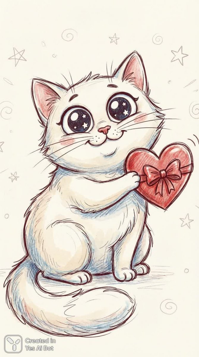 Милый котенок, нарисованный в нежной и игривой манере, пленяет своей непосредственностью. Его большие, полные любопытства глаза смотрят прямо на зрителя, выражая искреннюю доброту и тепло. Сидящий с изящно закрученным хвостом, котик словно приглашает в мир фантазий и сказок. В лапках он бережно держит ярко-красное сердечко, украшенное атласной лентой – символ любви, заботы и нежности. Простой светлый фон подчеркивает чистоту и наивность изображения, а техника контура придает ему легкость и воздушность. Выражение мордочки кота излучает беззаботность и радость, создавая ощущение уюта и тепла. Эта трогательная картинка способна растопить даже самое холодное сердце, даря ощущение гармонии и вдохновения. Она словно напоминает о важности маленьких моментов счастья и искренней привязанности. Этот рисунок – настоящее воплощение позитива и очарования, способное украсить любой интерьер и подарить хорошее настроение на весь день. Он излучает атмосферу волшебства и добра, заставляя улыбаться и мечтать о чудесах