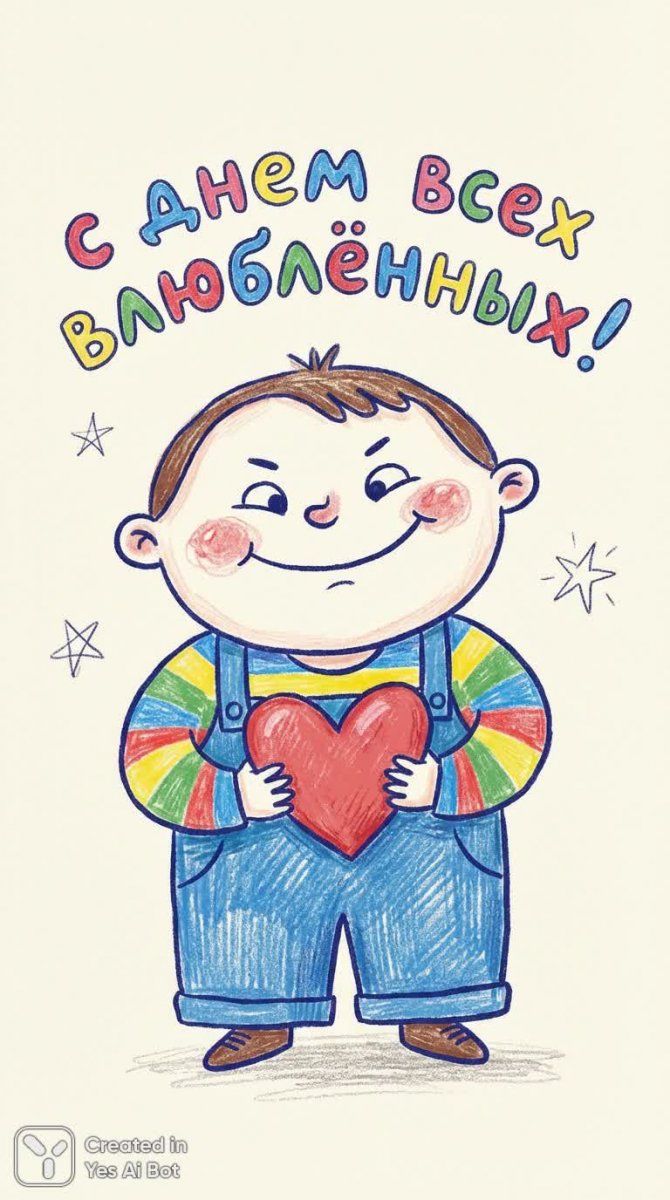 Весёлый мальчик с круглым лицом и красным сердцем – поздравление со Днем святого Валентина - Генерация в нейросети Nano-Banana