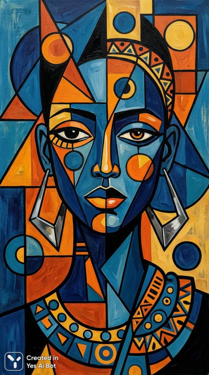 Яркий этнический портрет, воплощающий гармонию культурных мотивов и современного минимализма. Картина пленяет контрастом насыщенных цветов, создавая визуально динамичное и запоминающееся впечатление. Геометрические узоры, интегрированные в композицию, добавляют образу глубины и символичности, отсылая к древним традициям и ремеслам. Акцент сделан на деталях: крупные серьги и декоративные элементы служат ярким акцентом, подчеркивая индивидуальность и художественную ценность произведения. Дизайн полу-лица создает ощущение загадочности и интригует зрителя, приглашая к размышлению о красоте и идентичности. Изящные линии и минималистичный стиль придают портрету современный шарм, а использование искусных украшений демонстрирует мастерство исполнения. Эта работа – не просто изображение, а визуальная поэзия, сочетающая в себе этническую самобытность и элегантность современного искусства, являясь прекрасным примером того как традиционные элементы могут гармонично сосуществовать с современными тенденциями в изобразительном искусстве, создавая уникальный и запоминающийся образ. Картина отражает красоту многообразия культур и подчеркивает важность сохранения этнических корней в современном мире. Это произведение искусства – настоящее украшение для любого интерьера и прекрасный подарок для ценителей экзотики и высокого качества исполнения