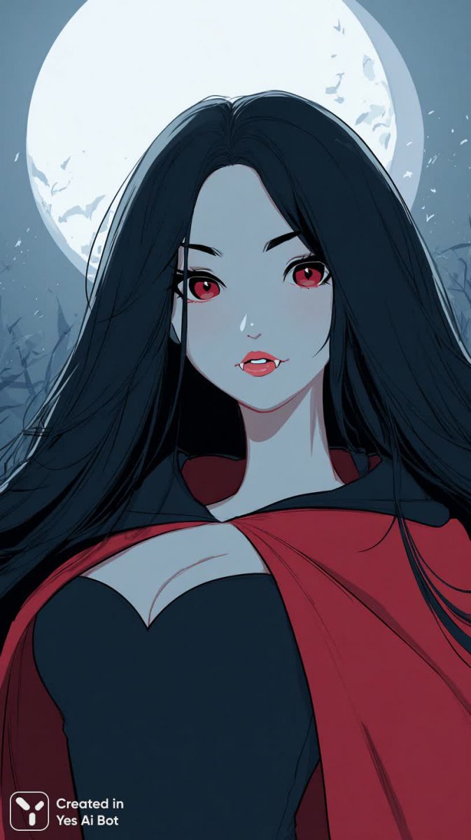 Завораживающая красота вампирши в стиле аниме оживает на цифровом полотне. Эта девушка с длинными черными волосами излучает мистическую притягательность и неземную грацию. Ее острые когти и пронзительные красные глаза выдают ее истинную природу, но мягкая улыбка смягчает этот зловещий образ, добавляя ему загадочности и очарования. Тонкий корсет подчеркивает изящную фигуру, а развевающийся плащ создает эффект полета и легкости. Лунный свет, окутывающий ее, придает сцене мечтательную атмосферу, словно она сошла со страниц волшебной сказки или ожила с экрана любимого мультфильма. Четкие контуры рисунка акцентируют внимание на деталях, делая изображение еще более выразительным и запоминающимся. Эта картина – идеальное сочетание невинности и опасности, красоты и силы, воплощенное в образе прекрасной вампирши, созданной с любовью к аниме-стилистике и цифровому искусству. Она словно приглашает зрителя окунуться в мир тайн и фантазий, где реальность переплетается с волшебством, а ночь хранит свои секреты. Это визуальное воплощение мечтательности и притягательного мрака, которое не оставит равнодушным ни одного поклонника аниме и фэнтези