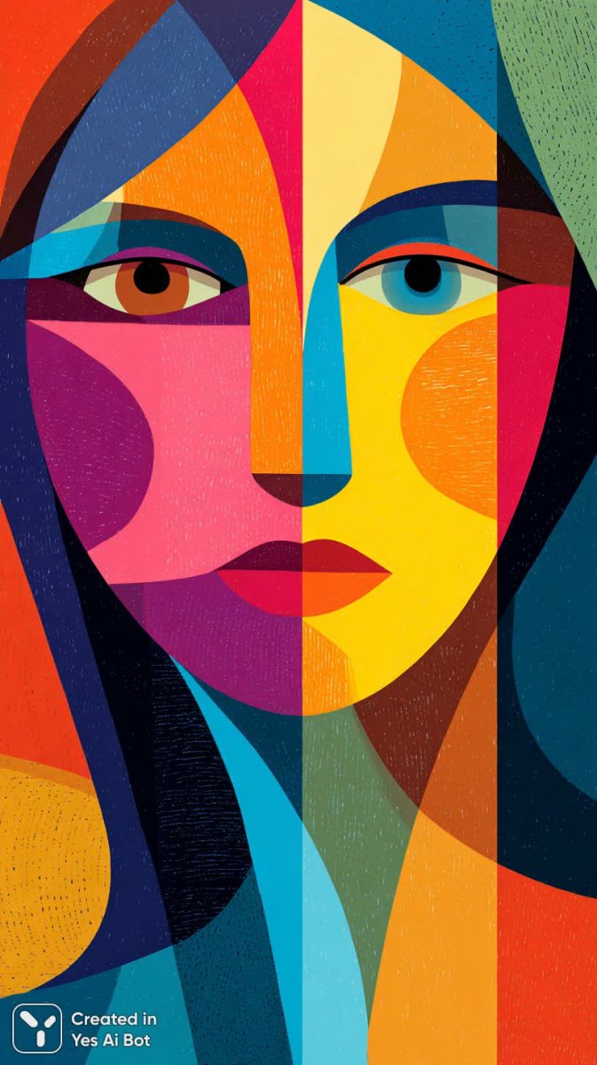 Кубистический портрет: яркие краски и минимализм в современном искусстве - Результат генерации нейросети Миджорни