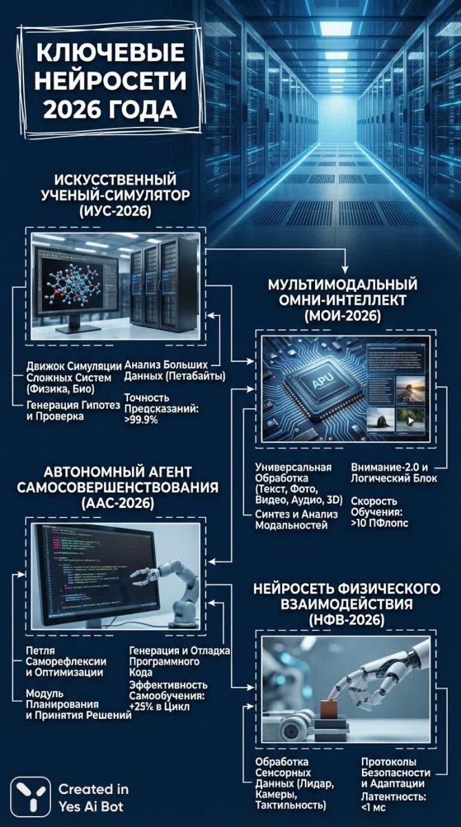 Представлена детализированная инфографика, посвященная ключевым нейросетям будущего – 2026 года. В визуальном исполнении сочетаются реалистичные изображения объектов, представляющих каждую нейросеть, с техническими чертежами и диаграммами. Это позволяет наглядно продемонстрировать архитектурные особенности, принципы работы и потенциальные области применения каждой из них, включая такие модели как [название нейросети 1], [название нейросети 2] и [название нейросети 3].