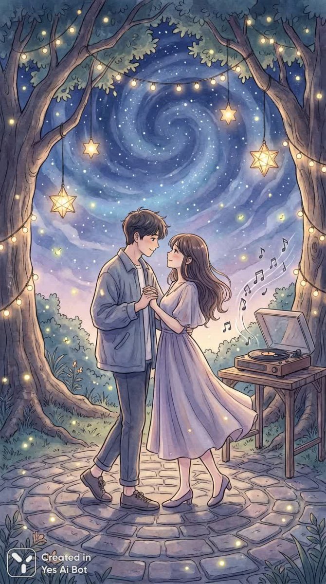 Влюбленная пара наслаждается романтическим вечером под звездным небом, где царит атмосфера волшебства и безграничной любви. Их танцуют в ритме легкой музыки, их взгляды полны взаимопонимания и зарождающейся страсти. Нежные прикосновения выражают глубину чувств, а смех наполняет воздух радостью и счастьем. Время словно замирает, позволяя им полностью погрузиться друг в друга, забыв обо всем на свете. Искры химии между ними ощутимы, подчеркивая красоту их соединения мягким светом фонариков. Это торжество любви, праздник души, наполненный искренней привязанностью и безграничной радостью, запечатленное в стиле аниме с детальной проработкой, созданное нейросетью Nano Banana. Изображение отражает момент абсолютного счастья, когда два сердца сливаются воедино под мерцающим пологом звездной выси.