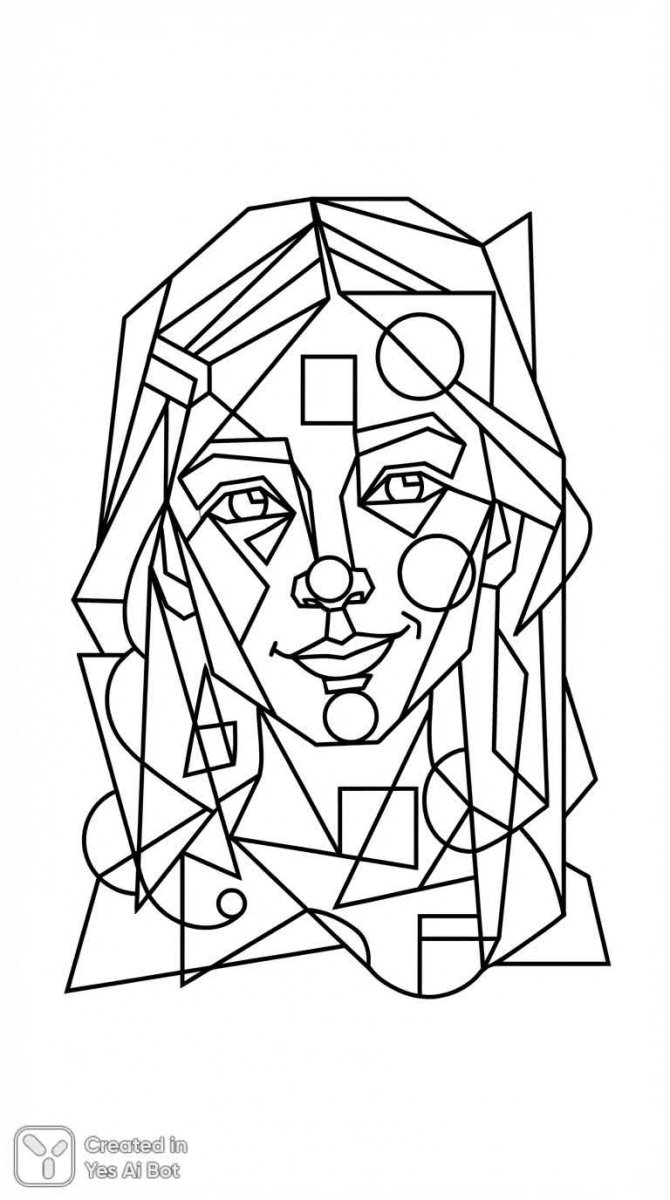 Девушка в стиле кубизма: черно-белый эскиз для раскрашивания - Результат генерации нейросети Nano Banana