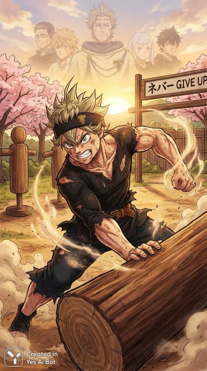 1boy, (Asta training) 🏋️♂️⚔️, (grueling session) 😓💦, (outdoor dojo setting) 🌳☀️, (pushing his limits) 💪🔥, (sweat glistening) 💦✨, (determination in every motion) 😤💥, (motivated by his dreams) 🌌🗡️, (challenging himself) 🥋💯, (visualizing victory) ^_^🌈, (embodying the spirit of a true warrior) 🚀❤️.