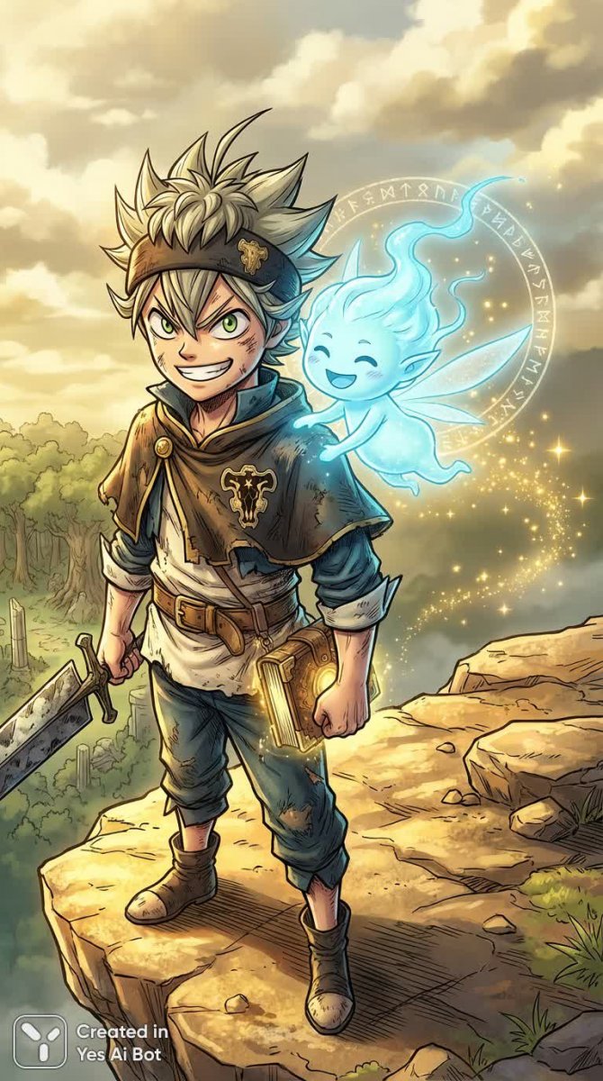 1boy, (Asta and Asta’s spirit companion) 😇✨, (adventurous spirit) 🦋🌌, (playful and cheerful) 😊🎉, (floating beside him) 🌬️💫, (sparkles in the air) ✨🌈, (supporting during battles) 💖⚔️, (sharing wisdom) 🧙♂️📜, (symbol of hope) 🕊️🌍, (showing loyalty and friendship) ❤️🤝, (always there to cheer him on) 😄💖, (encouraged by their bond) ^_^💞.