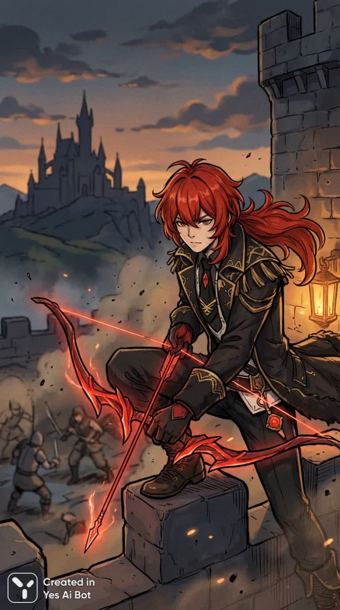 1boy, (фигура Дилюка) 🦸♂️, (прицеливаясь) 🎯🔥, (раскинутые волосы) 🌪️, (в стиле аниме) 🎨, (перед взрывом) 💥😮, (свет фонарей) 💡✨, (величественный замок на горизонте) 🏰, (жажда справедливости) ⚖️, (гневная решимость) 😡🔥, (сражение с врагами) ⚔️👹, (взгляд в будущем) 🔮, (методичное планирование) 🧠🔍, (открытый для приключений) 🗺️🏞️.
