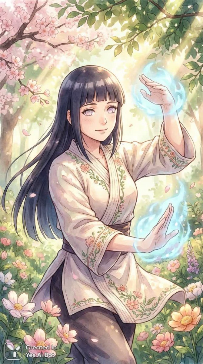 Нежная и застенчивая Хината из Наруто предстает перед нами в этом трогательном изображении, где скромность сочетается с неукротимой решимостью. Она усердно тренирует свои умения, словно пытаясь преодолеть внутренние сомнения и страхи, которые мешают ей раскрыться полностью. Вокруг неё расцветает буйство красок – нежные лепестки цветов создают атмосферу хрупкости и красоты, а солнечный свет, пробивающийся сквозь листву, символизирует надежду и новые начинания. В ее глазах читается борьба с неуверенностью, но в то же время вспыхивает теплый и ободряющий огонек, предвещающий скорое укрепление духа. Улыбка, светящаяся словно звезда, говорит о внутренней силе и растущей уверенности в себе. Каждое усилие приближает ее к заветной цели, делая её еще более очаровательной и пленительной. Этот образ – воплощение женственности, стойкости и веры в себя, вдохновляющий на преодоление препятствий и достижение мечты. Она словно сотканная из света и нежности, излучает тепло и дарит ощущение спокойствия и умиротворения. Наблюдая за ее тренировками, невозможно не восхититься её упорством и искренним стремлением стать сильнее. Это история о том, как даже самые хрупкие создания способны раскрыть в себе невероятную силу духа и покорить любые вершины