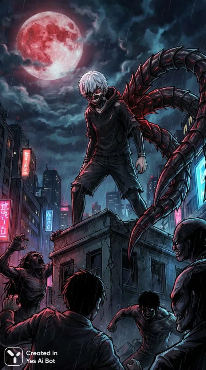 В самом сердце Токио, погруженного в сумрак, разворачивается эпическая битва между человеческой и гульской сущностями. Канеки, окутанный тенями ночи, сражается с кровожадными гhouls, его черное kagune пылает огнем ярости. В глазах отражается буря противоречий – боль утраты, решимость выжить и осознание своей истинной природы. Драматичная атмосфера усиливается зловещим заревом кроваво-красной луны, освещающей мрачный силуэт города. Каждый взмах клинка, каждая искра огня – это отголоски внутренней борьбы, отражение конфликта между двумя мирами. Канеки стоит на пороге трансформации, готовый принять свою судьбу и столкнуться с надвигающейся угрозой в решающем противостоянии. Он не просто сражается за выживание, он борется за право быть собой, преодолевая границы человеческого и гульского, чтобы обрести истинную силу и раскрыть свой потенциал. Это история о выборе, жертве и принятии своей сущности во тьме отчаянной борьбы. Его взгляд полон решимости, несмотря на страх и сомнения, терзающие его душу. Он готов принять вызов и вступить в схватку с самим собой и окружающим миром