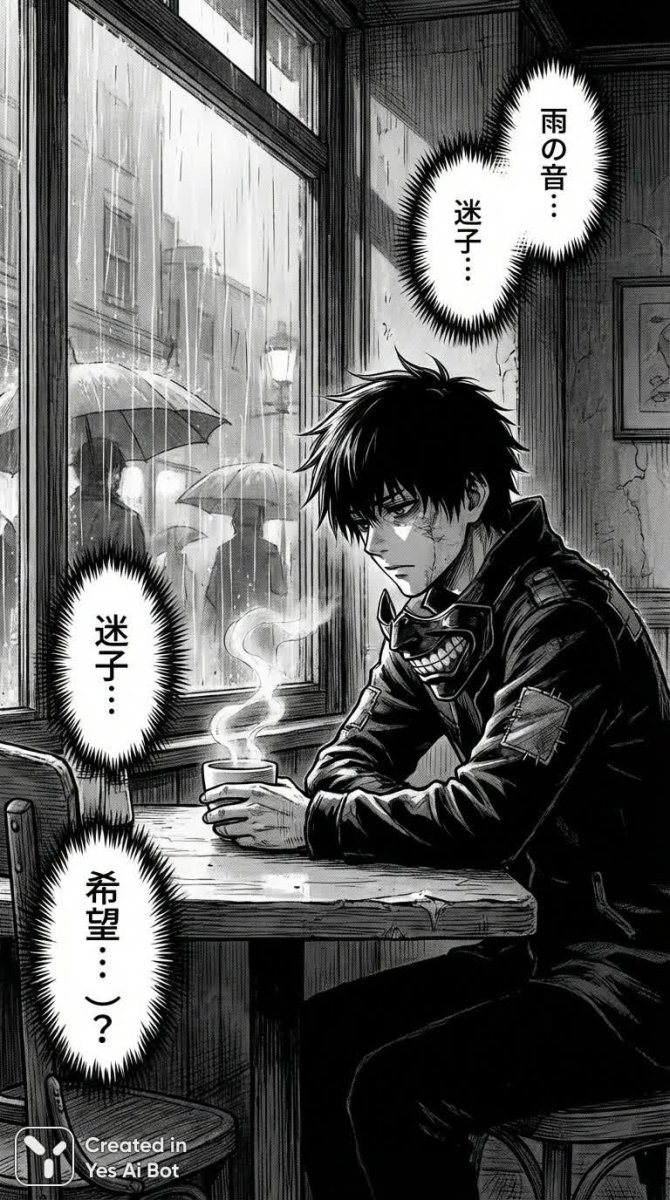 Задумчивый взгляд Кен Канеки: путь к принятию в мире теней и надежды - Пример изображения, созданного ИИ Nano Banana