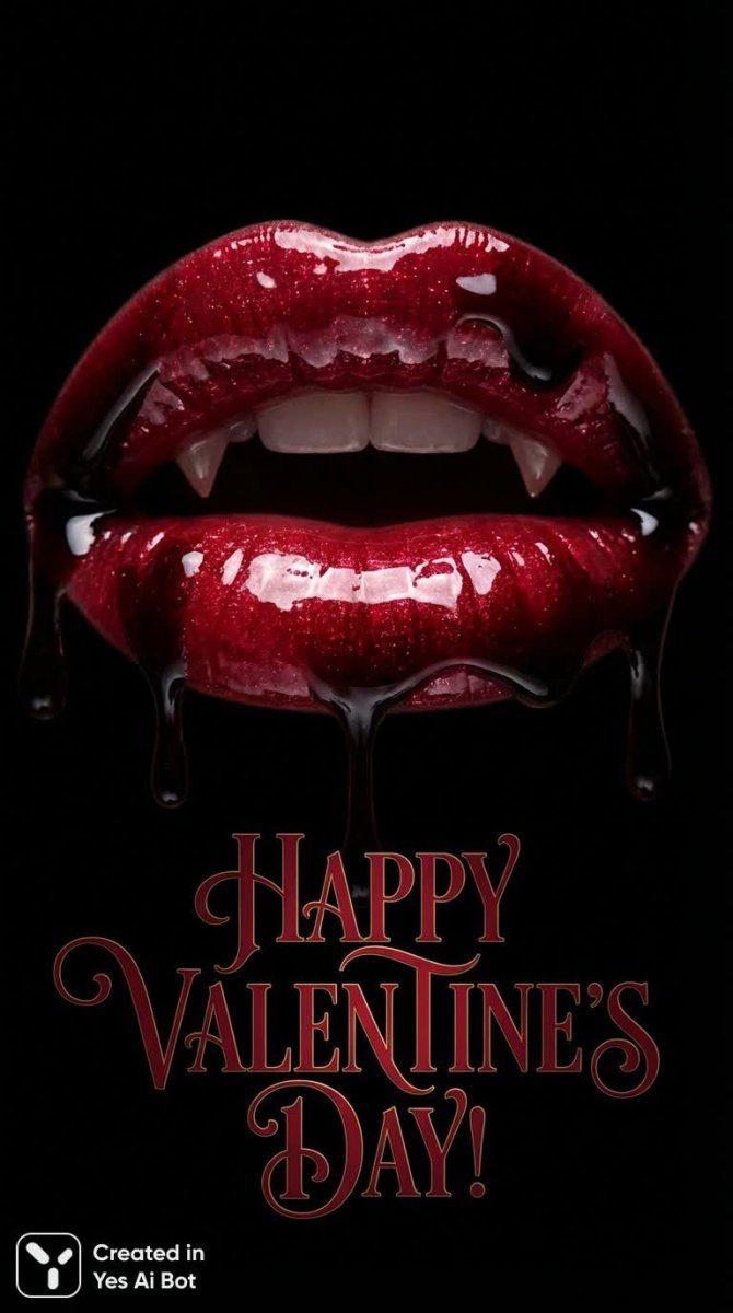Яркие губы с клыками: готический стиль и драматичное освещение для особенного дня святого Валентина - Пример изображения из нейросети Nano-Banana