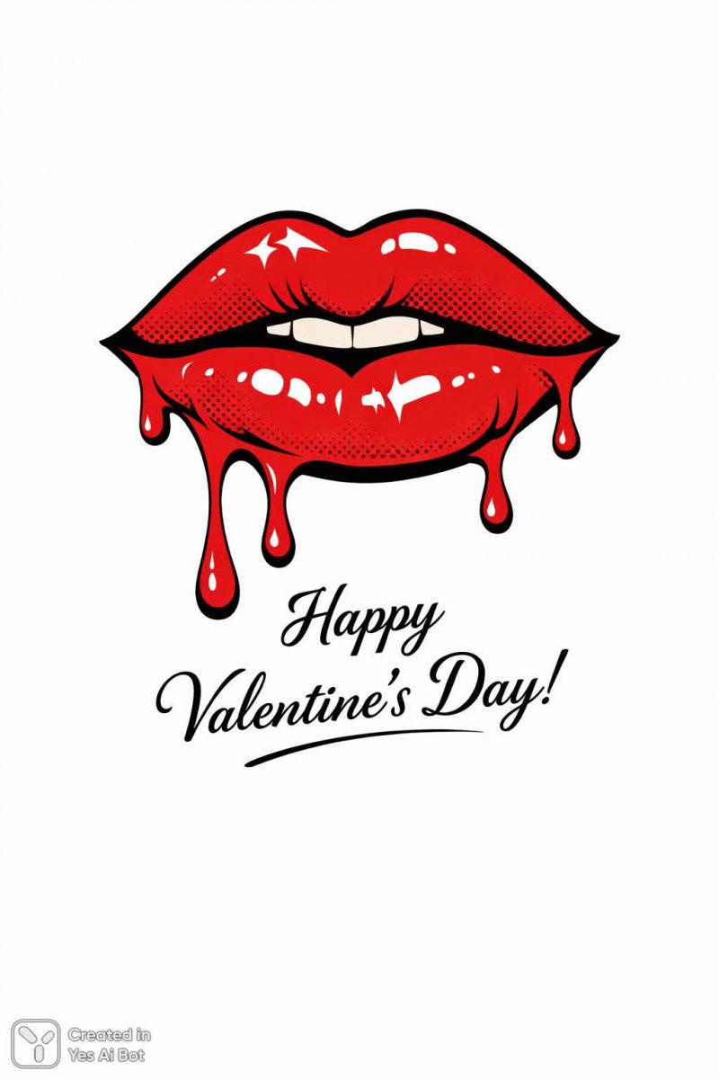 5. vintage style lips in vector art, dripping red surface, playful textures, minimalistic approach, glossy highlights, isolated white background, Happy Valentine’s Day!
