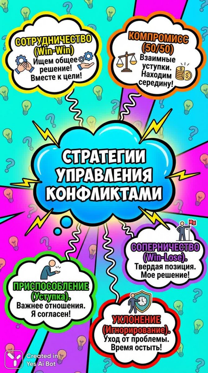 Управление конфликтами: яркая инфографика на русском языке. Изображение из нейросети Нано Банана
