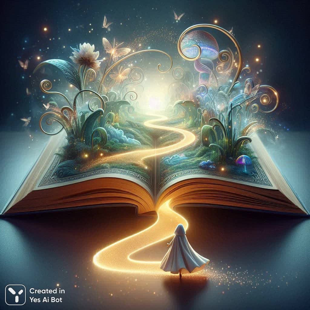 Книга выступает не просто как предмет, а как врата в мир, полный тайн, волшебства и безграничных возможностей. Путь девушки отражает личный путь каждого человека, стремящегося к самопознанию и личностному росту, вдохновляя на размышления о силе воображения и важности чтения. Иллюстрация передает ощущение чуда и надежду на то, что любые преграды можно преодолеть, если у человека есть мечта и стремление к цели. Стиль изображения – фэнтези, подчеркивающий волшебную атмосферу и нереальность происходящего, создавая впечатление начала чего-то нового, неизведанного и прекрасного, приглашая зрителя стать героем собственной истории. Это визуальное воплощение безграничного человеческого потенциала и призыва к исследованию новых горизонтов знаний и впечатлений.