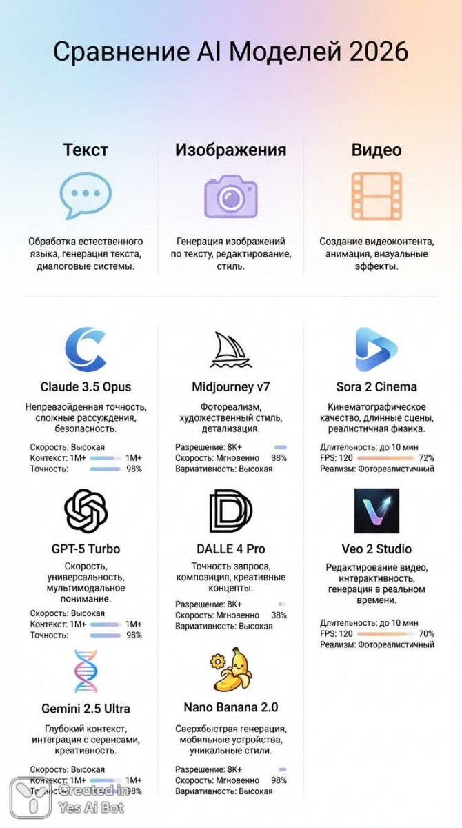 nanobanana Сравнение ИИ моделей: текст, изображения и видео в 2026 году. Картинка из нейросети Nano Banana