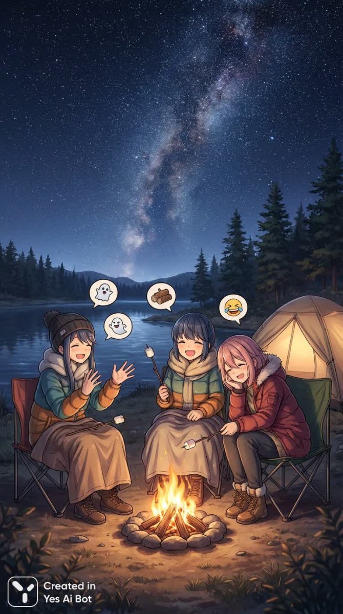 3friends, (camping by the lake) 🏕️🌊, (sitting around the campfire) 🔥😊, (telling stories) 📖😄, (under a starry night) 🌌✨, (soft whispers and laughter) 🙈💖, (toasting marshmallows) 🍡🔥, (friendly banter) :p, (feeling cozy and connected) 🤗🌈, (the perfect getaway) 😎🏞️, (creating lasting friendships) 💞🌟.