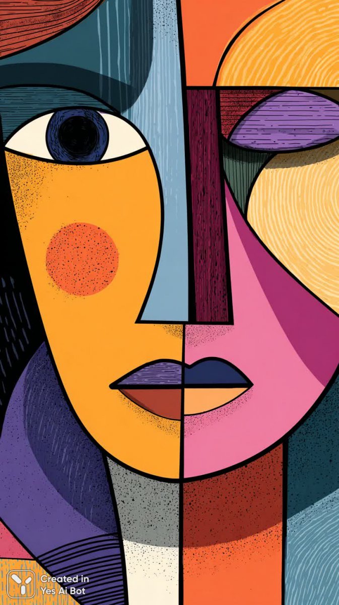 Загадочное полотно, сотканное из фрагментов женского лица, раскрывает перед зрителем мир геометрии и цвета. Изящные черты лица деконструированы на множество графических элементов, образуя сложный узор, который захватывает взгляд своей динамикой и непредсказуемостью. Яркая палитра красок взрывается на фоне, создавая ощущение энергии и движения. Четкие, смелые контуры подчеркивают каждую деталь, придавая изображению графическую выразительность. Асимметрия композиции добавляет интриги и заставляет задуматься о скрытых смыслах. Стиль кубизма прослеживается в каждом штрихе, превращая портрет в абстрактную форму, лишенную прямолинейности, но наполненную глубоким эмоциональным содержанием. В этом цифровом произведении искусства заключена целая вселенная чувств и переживаний, отраженная через призму геометрических форм и ярких красок. Это не просто изображение лица - это манифест индивидуальности, выраженный языком современного искусства. Каждое пятно цвета, каждая линия, каждый угол несет в себе определенный смысл, создавая уникальную визуальную историю. Изучая этот портрет, зритель погружается в мир абстракции и открывает для себя новые грани восприятия красоты и гармонии. Это произведение – отражение сложного внутреннего мира, выраженного через смелое сочетание форм и цветов, способное вызвать широкий спектр эмоций и ассоциаций