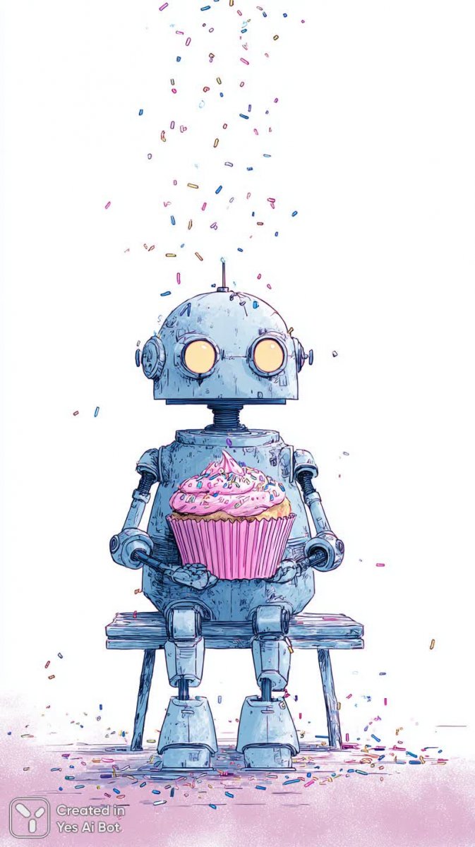 Милый робот с огромным кексом – очаровательная иллюстрация в технике туши, излучающая радость и беззаботность. Его круглая голова с большими добрыми глазами вызывает улыбку, а крошечные ручки добавляют шарма этому необычному персонажу. Робот стоит на столе, словно гость праздника, и вокруг него творится настоящее волшебство – с неба падают разноцветные посыпки, создавая ощущение сказки. Яркий фон украшен красочными декорациями для вечеринки, подчеркивающими игривое настроение рисунка. Это идеальное изображение для тех, кто любит оригинальные и позитивные вещи, будь то открытка, иллюстрация к детской книге или просто милый элемент оформления интерьера. Кажется, что этот робот готов разделить с вами радость момента и подарить хорошее настроение на весь день. Вся композиция пронизана атмосферой праздника и веселья, а детализированная прорисовка в технике туши придает работе особый шарм и глубину. Это визуальное воплощение детской мечты о дружбе и сладких угощениях, созданное с любовью и вниманием к деталям. Насладитесь этой милой картинкой и позвольте ей наполнить ваш мир позитивом и яркими красками