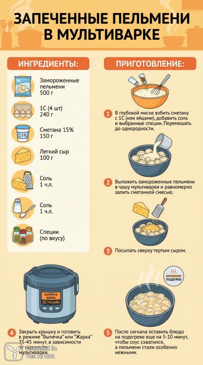 Пельмени запеченные: простое и вкусное решение для быстрого ужина в мультиварке! - Картинка, созданная нейросетью Нано Банана
