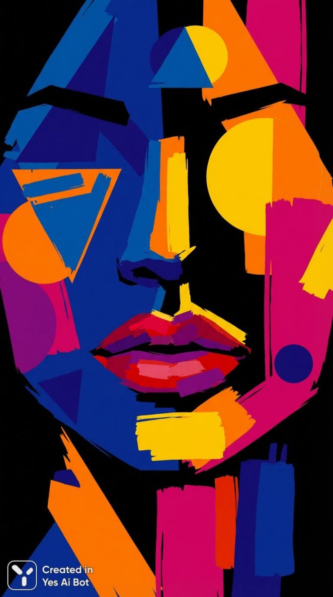 Яркий портрет с геометрией и асимметрией в стиле кубизма - Результат работы нейросети Нано Банана