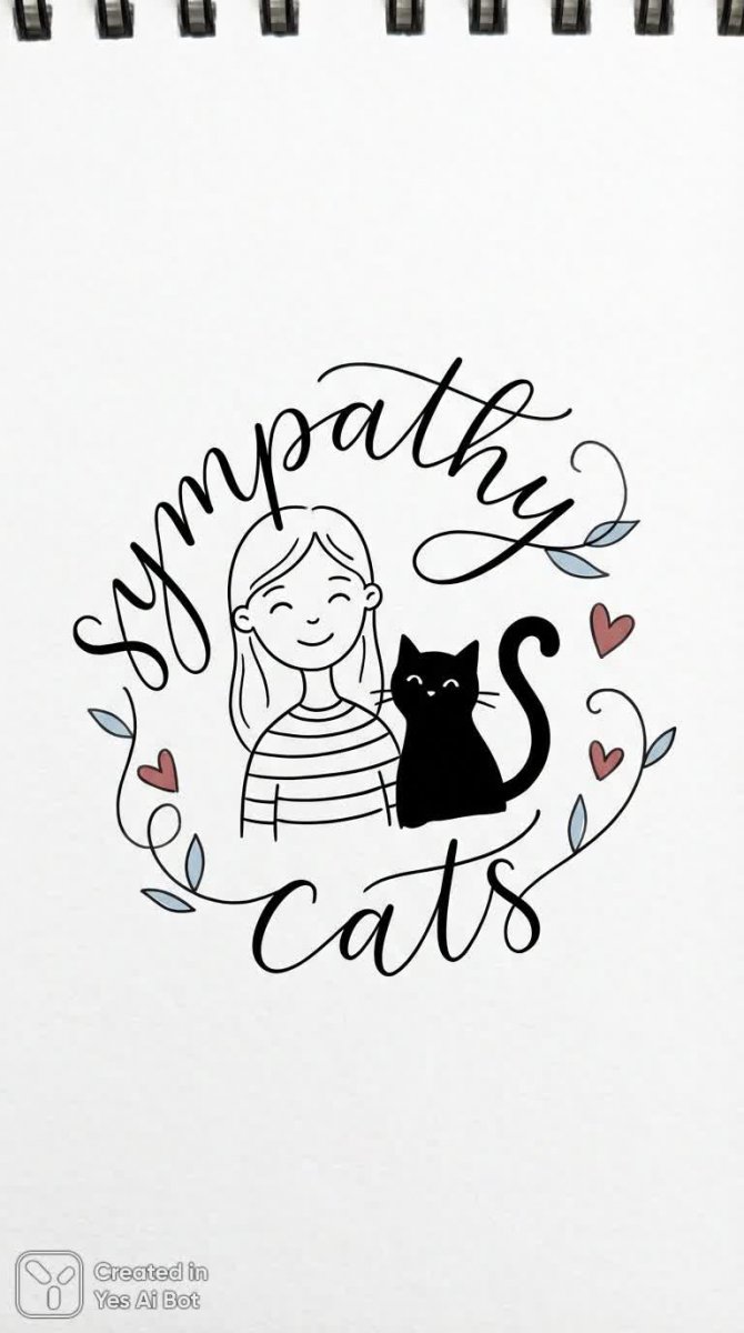 line art drawing of a girl standing with a black cat, joyful expression, love cats text flowing around them, minimalist style, clean lines, monochrome with touches of color, artistic vibe.
