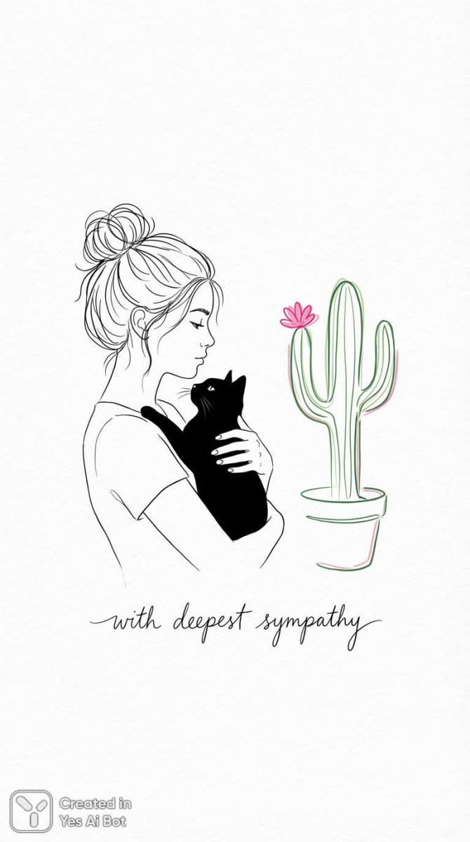 Изящный минималистичный набросок изображает девушку и её черного кота, объединенных нежной любовью и гармонией. Рядом с ними расцветает яркий кактус, добавляя композиции нотку экзотики и жизненной силы. Использование современного стиля линейной графики создает ощущение легкости и воздушности, подчеркнутое светлым фоном. Работа выполнена в лаконичной манере, акцентируя внимание на простых формах и чистых линиях, что придает ей современный и элегантный вид. Эта иллюстрация – воплощение уюта, тепла и безграничного чувства привязанности между человеком и его питомцем, обрамленное красотой природы. Вся картина излучает спокойствие и гармонию, создавая позитивное настроение и оставляя ощущение нежности и радости. Это прекрасное сочетание графического искусства и трогательной истории о любви, выраженное в изысканной простоте
