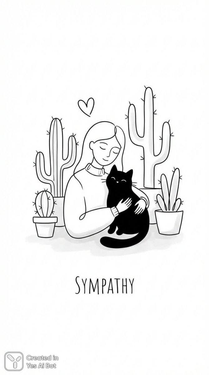 Нежная иллюстрация, посвященная безграничной любви между девушкой и её черным котом. В центре композиции – трогательный момент объятий, подчеркнутый современным минималистичным стилем. Вокруг героев простирается пустынный пейзаж с колючими кактусами, создающими интересный контраст с мягкостью и уютом сцены. Художник мастерски использует игривые линии, чтобы передать легкость и радость этого момента. Изящная композиция располагает к созерцанию, а белоснежный фон позволяет выделить яркие детали рисунка. Мягкие тени добавляют глубины и объема изображению, делая его еще более реалистичным и привлекательным. Это произведение искусства излучает тепло и искренность, передавая глубокую эмоциональную связь между человеком и животным. Иллюстрация выполнена с большой любовью к деталям, что делает ее прекрасным украшением любого интерьера или подарком для ценителей современного искусства и милых животных. Картина наполнена позитивом и спокойствием, создавая атмосферу гармонии и умиротворения. Современный стиль исполнения придает ей актуальность и универсальность