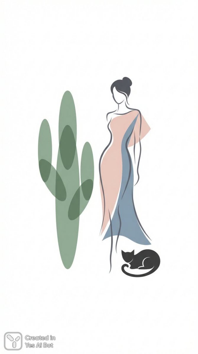 Нежная иллюстрация в стиле минимализма и модной графики изображает девушку, ласково проводящую время со своей черной кошкой на фоне величественного кактуса. Композиция отличается плавными линиями и простыми формами, создавая ощущение гармонии и спокойствия. Мягкая цветовая палитра подчеркивает мечтательную атмосферу, а общий стиль напоминает иллюстрацию из модного журнала или рекламной кампании. Белый фон позволяет акцентировать внимание на деталях и усиливает визуальный эффект легкости и воздушности. Изображение передает чувство умиротворения, близости между девушкой и ее питомцем, и восхищение красотой природы, воплощенной в образе кактуса. Эта работа идеально подойдет для оформления интерьера, создания уникальных принтов или использования в качестве графического элемента дизайна, благодаря своей элегантности и универсальности. Кажется, будто время замерло в этом волшебном уголке, где царят любовь, спокойствие и вдохновение. Это визуальная ода простоте и красоте, которая способна пробудить самые светлые чувства и эмоции у зрителя