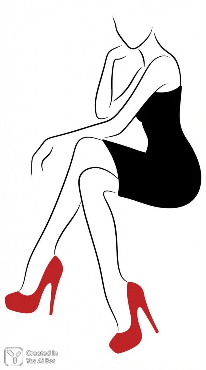 Современная стильная иллюстрация в минималистичном графическом стиле изображает элегантную женщину в облегающем черном платье и красных туфлях-лодочках на шпильке. Фигура женщины, с изящно скрещенными ногами, выделяется на фоне чистого белого пространства, создавая ощущение простора и акцентируя внимание на деталях силуэта и обуви. Работа выполнена в технике линейной иллюстрации, передающей актуальные тренды моды и современный вайб. Акцент сделан на красных туфлях, которые становятся ярким цветовым акцентом и подчеркивают значимость деталей в создании стиля. Изображение демонстрирует мастерское владение графическими приемами, создавая визуально привлекательный образ, сочетающий простоту и изысканность, подходящий для современного пространства или модного издания. Создана нейросетью NanoBanana с использованием алгоритма ИИ и выполнена в стиле минимализма.