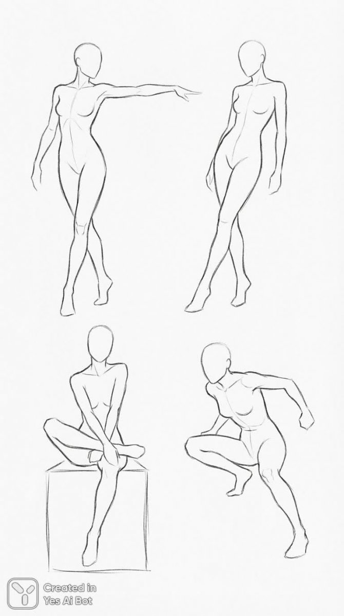 Изящные эскизы человеческих фигур, словно ожившие на холсте. Четыре манекена в динамичных позах – одни сидят, другие стоят, демонстрируя элегантность и грацию линий. Простые схематичные очертания, выполненные в серо-черной гамме, создают эффект минимализма и подчеркивают художественную ценность изображения. Отсутствие лиц позволяет сосредоточиться на красоте формы и пластике тела, придавая композиции универсальность и загадочность. Нейтральный белый фон служит идеальным фоном для этих стилизованных фигур, позволяя им полностью раскрыть свой потенциал. Иллюстрация представляет собой настоящий гимн простоте и изысканности, воплощая в себе принципы минималистического искусства. Это не просто изображение манекенов – это художественное исследование человеческой фигуры через призму линий и теней, создающее ощущение движения и гармонии. Каждая поза продумана до мелочей, каждая линия наполнена смыслом, что делает эту работу поистине уникальной и запоминающейся. Эскизы идеально подойдут для использования в дизайне одежды, иллюстрациях модных журналов или как самостоятельное произведение искусства, способное украсить любое пространство своей лаконичностью и элегантностью. Это визуальное воплощение стильного минимализма