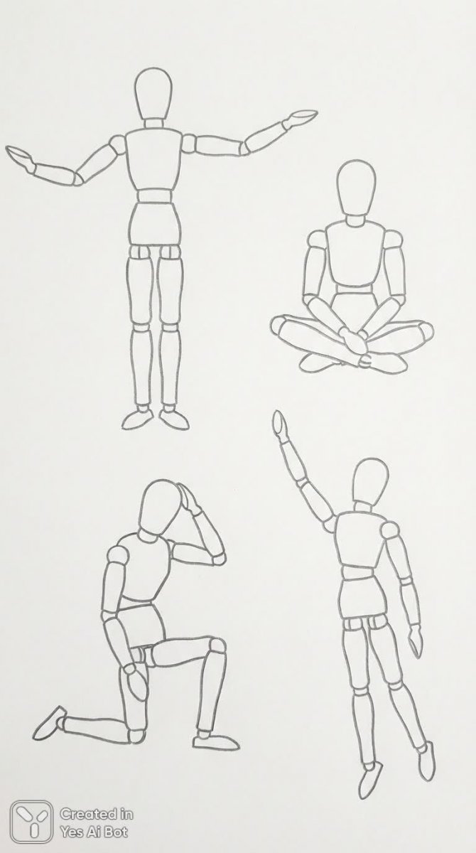 Скетчи манекенов: минимализм и простые формы - Картинка, сгенерированная нейросетью Nano-Banana