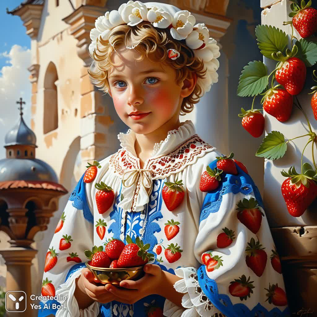 Нежная картина в стиле художников Юлии Эверетт и Тибора Наги передает атмосферу русской провинции и домашнего уюта. В центре композиции – очаровательный мальчик в традиционном гжельском кафтане, словно сошедший с иллюстраций к народной сказке. Вокруг него развернулась живописная сцена: спелые клубника, украшенная воздушными взбитыми сливками, и изящное льняное кружево создают ощущение легкости и беззаботности. Художник мастерски использует технику работы мастихином, придавая изображению фактурность и объем. Гжельская палитра – сочетание белоснежного фона и насыщенного кобальтового синего – добавляет картине аутентичности и колорита. Все это воссоздано с любовью к деталям и тонким пониманием русского фольклора, воплощая в себе дух традиций и народных промыслов. Картина излучает теплоту и радушие, словно приглашая зрителя разделить момент домашнего счастья и почувствовать себя частью русской культуры. Это прекрасный пример современного искусства, вдохновленного богатым наследием России и выполненный с использованием классических техник живописи маслом. Работа вызывает ностальгические чувства и дарит ощущение спокойствия и гармонии
