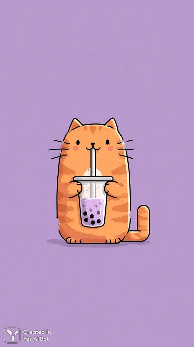 Очаровательный пушистый рыжий котенок породы табби с восхитительной мордочкой нежно смотрит в камеру, наслаждаясь любимым напитком – молочным чаем с пузырьками. Малыш аккуратно придерживает стаканчик лапкой и легко потягивается через трубочку, демонстрируя истинное кошачье удовольствие. Яркие цвета создают атмосферу радости и тепла, а мягкий фиолетовый фон добавляет нежности этому милому моменту. Изображение выполнено в мультяшном стиле с вниманием к деталям, что делает его особенно привлекательным и вызывает улыбку. Картина излучает уют и спокойствие, словно приглашая зрителя разделить эту маленькую радость с пушистым героем. Высокое качество изображения позволяет рассмотреть каждую шерстинку на кошачьей мордочке и оценить мастерство художника, создавшего это чудесное произведение искусства. Этот забавный табби покорит сердца любителей животных своей непосредственностью и обаянием