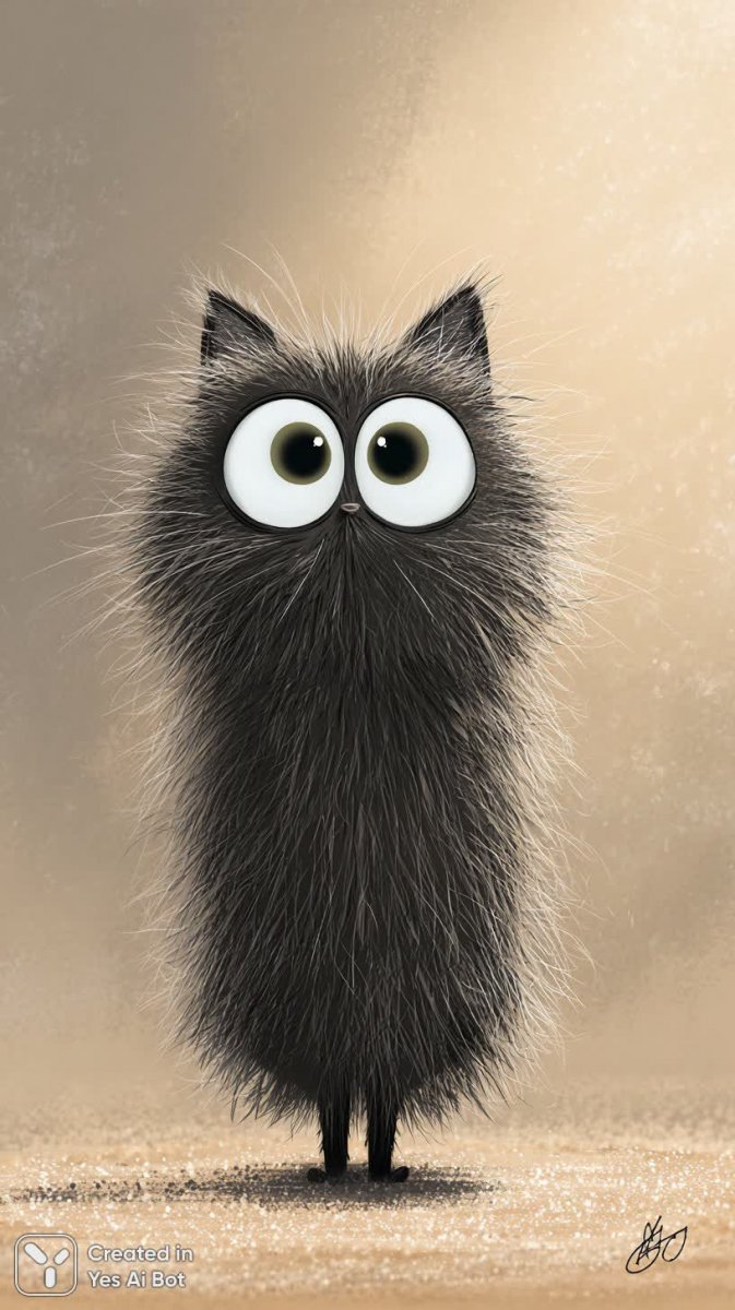 Милый пушистый кот с удивлённым выражением на огромных круглых глазах застыл в позе изумления перед современным интерьером. Мягкий свет заливает комнату, подчеркивая густую, гладкую шерсть кота и создавая ощущение тепла и уюта. Стиль изображения выполнен в ярком, мультяшном формате, что добавляет картине игривости и очарования. Акцент на деталях позволяет рассмотреть каждую ворсинку пушистой шкурки питомца, а мягкий фокус придает изображению мечтательную, нереальную атмосферу. На заднем плане уютный ковёр дополняет общую картину домашнего спокойствия и комфорта. Этот кот – воплощение милоты и удивления, его взгляд словно приглашает зрителя разделить момент восхищения окружающим миром. Изображение вызывает положительные эмоции и дарит ощущение радости от созерцания этого пушистого создания в гармоничном пространстве современного дома. Кот выглядит невероятно мягким и приятным на ощупь, а его удивлённое выражение делает его по-настоящему запоминающимся персонажем. Этот образ идеально подходит для иллюстраций детских книг или оформления интерьеров, создавая атмосферу тепла и позитива
