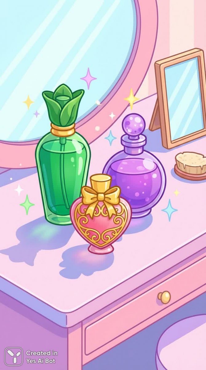 Набор ярких флаконов духов создает ощущение радости и беззаботности. Высокий зеленый флакон с изящными изгибами словно олицетворяет свежесть и энергию природы. Круглый фиолетовый флакон добавляет нотку загадочности и таинственности, притягивая взгляд своей насыщенностью цвета. Нежный розовый флакон с золотыми акцентами излучает женственность и элегантность, словно намекая на роскошный аромат. Флаконы гармонично расположены на светлом розовом столике, который создает атмосферу уюта и комфорта. Мягкие тени подчеркивают объем и форму флаконов, придавая им дополнительную глубину и выразительность. В воздухе словно танцуют веселые искры, добавляя легкости и игривости всей композиции. Вся картина выполнена в стиле мультяшной иллюстрации с использованием яркой цветовой палитры. Яркие цвета создают ощущение праздника и позитива, заряжая энергией и хорошим настроением. Этот натюрморт – настоящий гимн красоте, радости жизни и волшебству аромата. Он пробуждает воображение и вдохновляет на создание собственных уникальных образов. Это прекрасный выбор для тех, кто ценит яркие цвета, оригинальный дизайн и неповторимую атмосферу праздника. Набор флаконов духов – это не просто предмет интерьера, а настоящий символ женственности, красоты и гармонии с собой. Он станет отличным подарком для любителей парфюмерии и поклонников ярких красок в дизайне