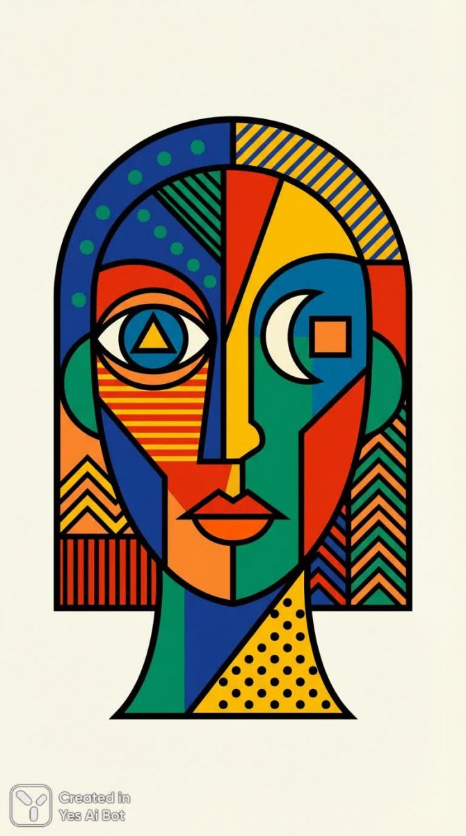Вся работа пронизана духом современного искусства, объединяя в себе элементы графических узоров и принципы кубизма, представляя собой исследование формы, цвета и восприятия. Геометрические разделения отражают сложность человеческой личности, а яркая палитра передаёт внутреннюю энергию и страсть. Итоговый образ – это смелое сочетание элегантности минимализма и дерзости кубистического подхода, приглашающее к размышлению о красоте и многообразии человеческой сущности. Это не просто изображение, а визуальный эксперимент, созданный с использованием нейросети Nano Banana v.1.0 Pro под управлением пользователя @yes_ai_bot.