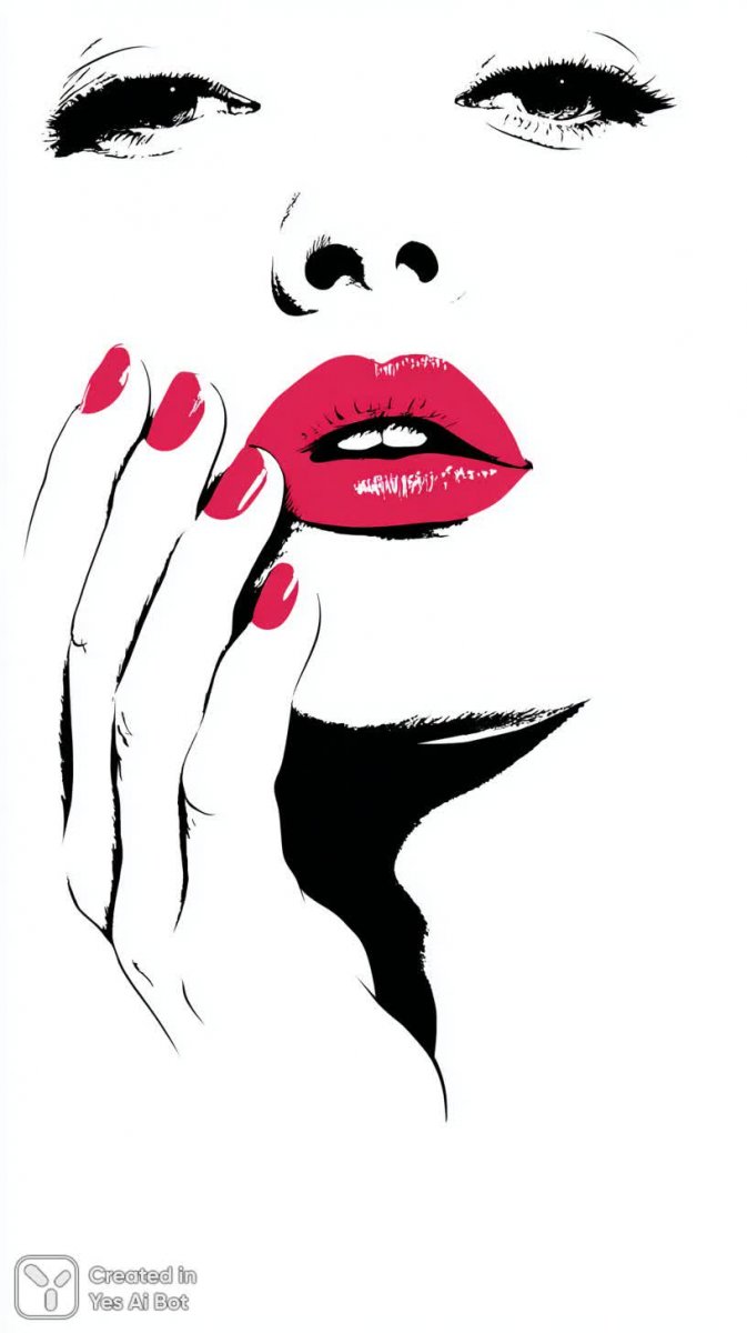 Элегантный графический портрет женщины в минималистичном стиле. Акцент сделан на выразительных деталях – ярких розовых губах и алых ногтях, создающих эффектную цветовою контрастность. Нежная рука слегка касается щеки, добавляя изображению утонченности и деликатности. Изображение выполнено в технике векторной графики с четкими линиями и высокой детализацией, что придает ему современный и стильный вид. Белый фон подчеркивает лаконичность композиции, не отвлекая внимание от главного объекта – лица женщины. Этот арт-объект идеально подходит для использования в дизайне, рекламе или как элемент современного интерьерного декора. Он передает ощущение чистоты, изысканности и минимализма, а также привлекает внимание своей яркой цветовой палитрой и четкими графическими элементами. Использование векторной графики позволяет масштабировать изображение без потери качества, делая его универсальным для различных целей и носителей. В целом, это стильное и запоминающееся визуальное решение, которое сочетает в себе простоту форм и выразительность деталей. Оно подойдет для тех, кто ценит современный дизайн и лаконичность. Подчеркнутая контрастность цветов создает визуальную привлекательность, а чистые линии придают образу элегантность и строгость. Этот графический портрет – это не только изображение лица, но и демонстрация вкуса и стиля